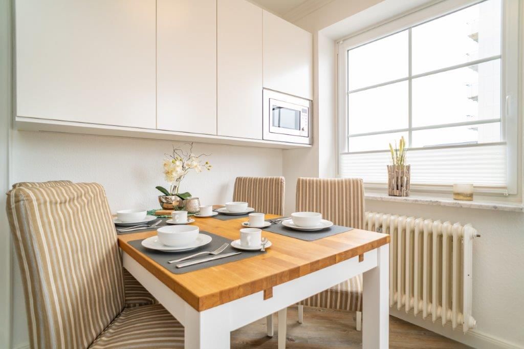 Das ca. 65 m² große Apartment "Syltliebe" bietet Platz für 2 bis 4 Personen und liegt in idealer Lage ‒ direkt im Stadtzentrum und nur wenige Gehminuten vom Strand entfernt. Die Unterkunft befindet sich in einem gepflegten Haus mit Fahrstuhl und ist auch fußläufig vom Bahnhof bequem erreichbar. Das Apartment verfügt über ein separates Schlafzimmer mit einem komfortablen Boxspringbett (180 x 200 cm) sowie einer Schlafcouch (140 x 200 cm) im Wohnbereich, die sich im Handumdrehen in eine zusätzliche Schlafgelegenheit verwandeln lässt. Der Wohn- und Essbereich ist hell und modern eingerichtet und bietet Zugang zum Balkon, auf dem Sie gemütlich frühstücken oder den Abend ausklingen lassen können. Für Ihre Selbstverpflegung steht Ihnen eine kleine Küche zur Verfügung, ausgestattet mit allen wichtigen Utensilien ‒ bitte bedachten Sie, dass kein Backofen vorhanden ist. Ein Duschbad rundet das Angebot ab. Nutzen Sie gerne das kostenfreie WLAN. Öffentliche, kostenpflichtige Parkmöglichkeiten befinden sich in umliegender Nähe. Haustiere sind leider nicht erlaubt.